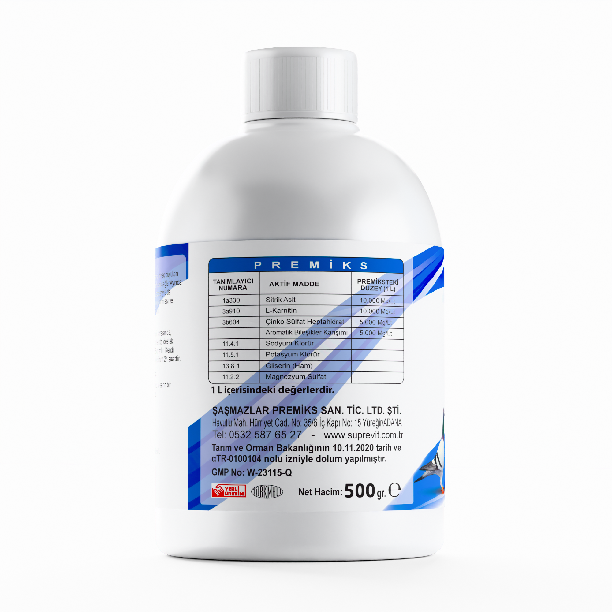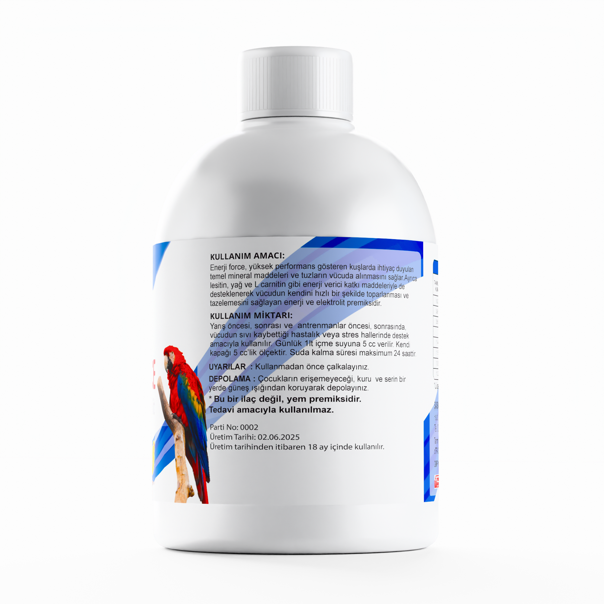 Süprevit Enerji Force, yüksek performanslı kuşların enerji ve elektrolit ihtiyaçlarını karşılamak için özel olarak geliştirilmiş bir sıvı destek ürünüdür. Yarış öncesi, sonrasında veya antrenman dönemlerinde kuşların ihtiyaç duyduğu enerjiyi hızlı bir şekilde sağlar. İçeriğinde bulunan L-Karnitin, yağların enerjiye dönüşümünü hızlandırarak daha verimli performans elde edilmesine katkıda bulunur. Sitrik asit sindirimi kolaylaştırırken bağışıklık sistemini destekler, çinko ve magnezyum kas ve sinir sistemi sağlığı için kritik rol oynar. Sodyum ve potasyum mineralleri ise elektrolit dengesini koruyarak sıvı kaybına karşı koruma sağlar. Glikoz ve aromatik karışımlar sayesinde kuşlar iştahla tüketir ve daha enerjik hale gelir. GMP ve ISO belgeli üretim tesislerinde veteriner kontrolünde hazırlanmış olan Süprevit Enerji Force, güvenle kullanılabilecek bir enerji ve elektrolit kaynağıdır.